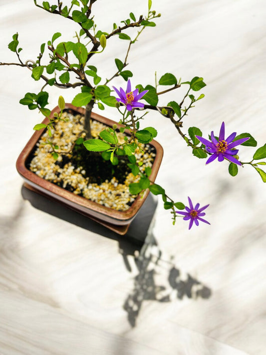 8 Inch Lavender Star Bonsai Tree With Ceramic Saucer