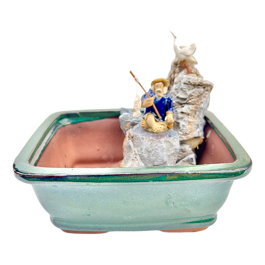 7” Rock Feature Square Bonsai Pot (Teal)
