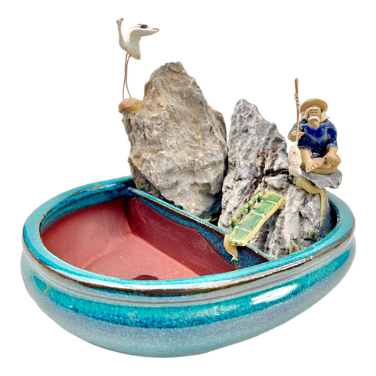 Sold out8” Rock Feature Bonsai Pot (Teal)