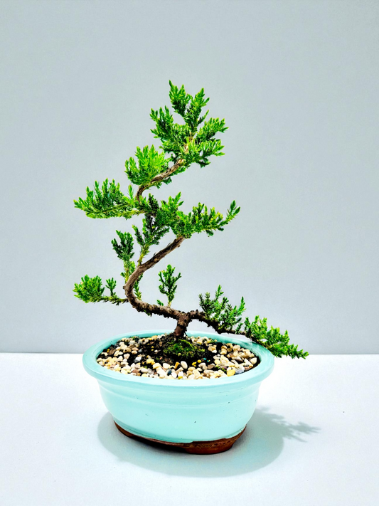 8 Inch Juniper Squamata Bonsai Tree - Turqoise Oval Pot