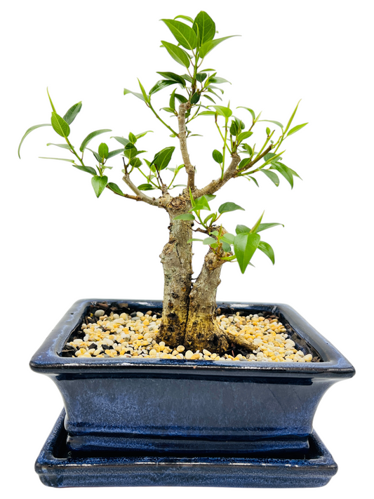 8 Inch Twin Trunk Small Leaf Fig Bonsai Tree With Saucer