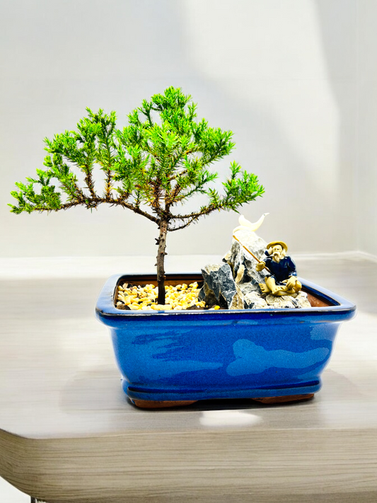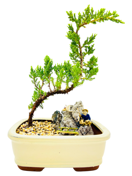 5” Japanese Shimpaku Juniper Bamboo Pot With Fisherman Bonsai Tree