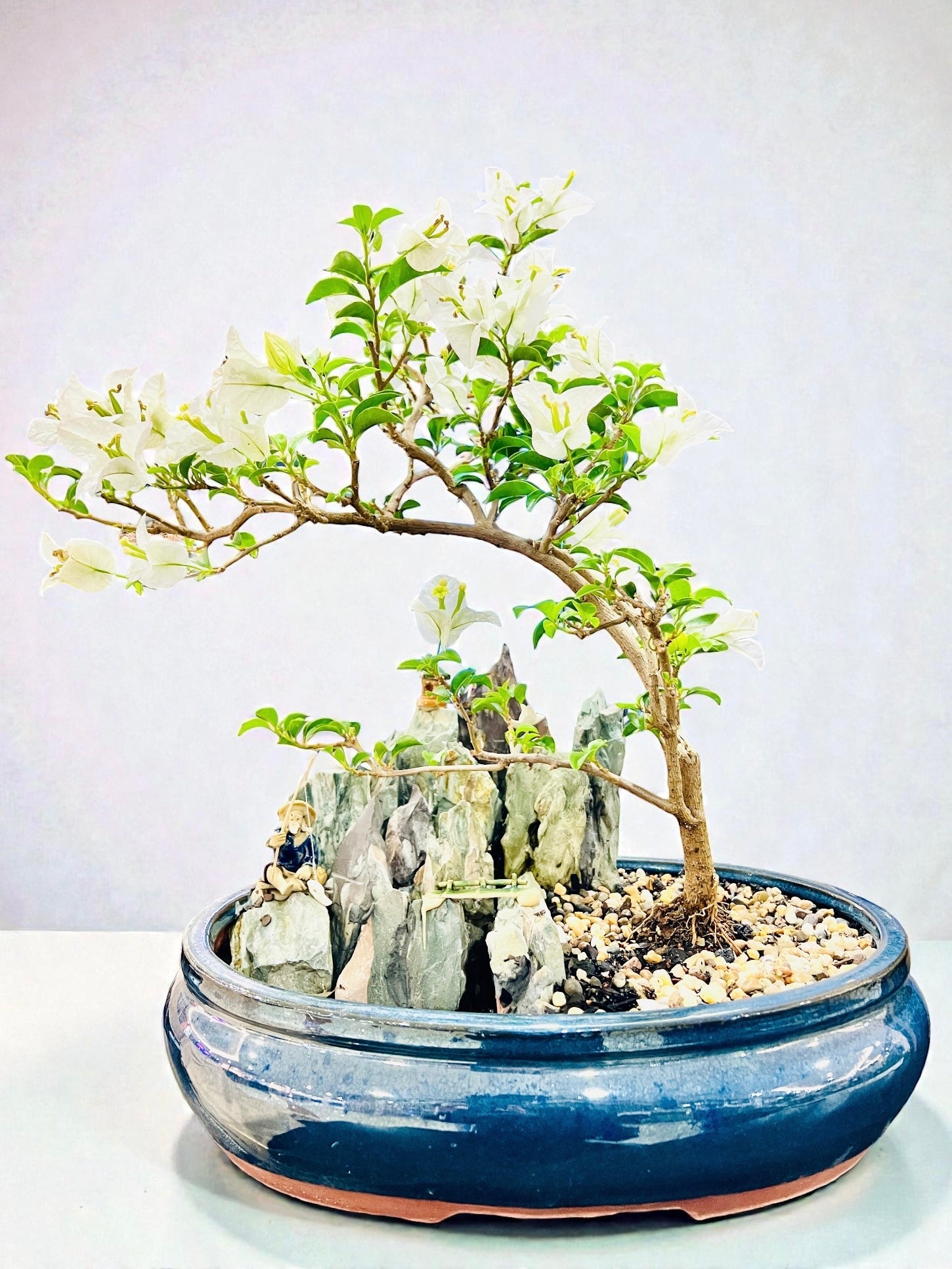 14 Inch White Bougainvillea Rock Feature Bonsai Tree