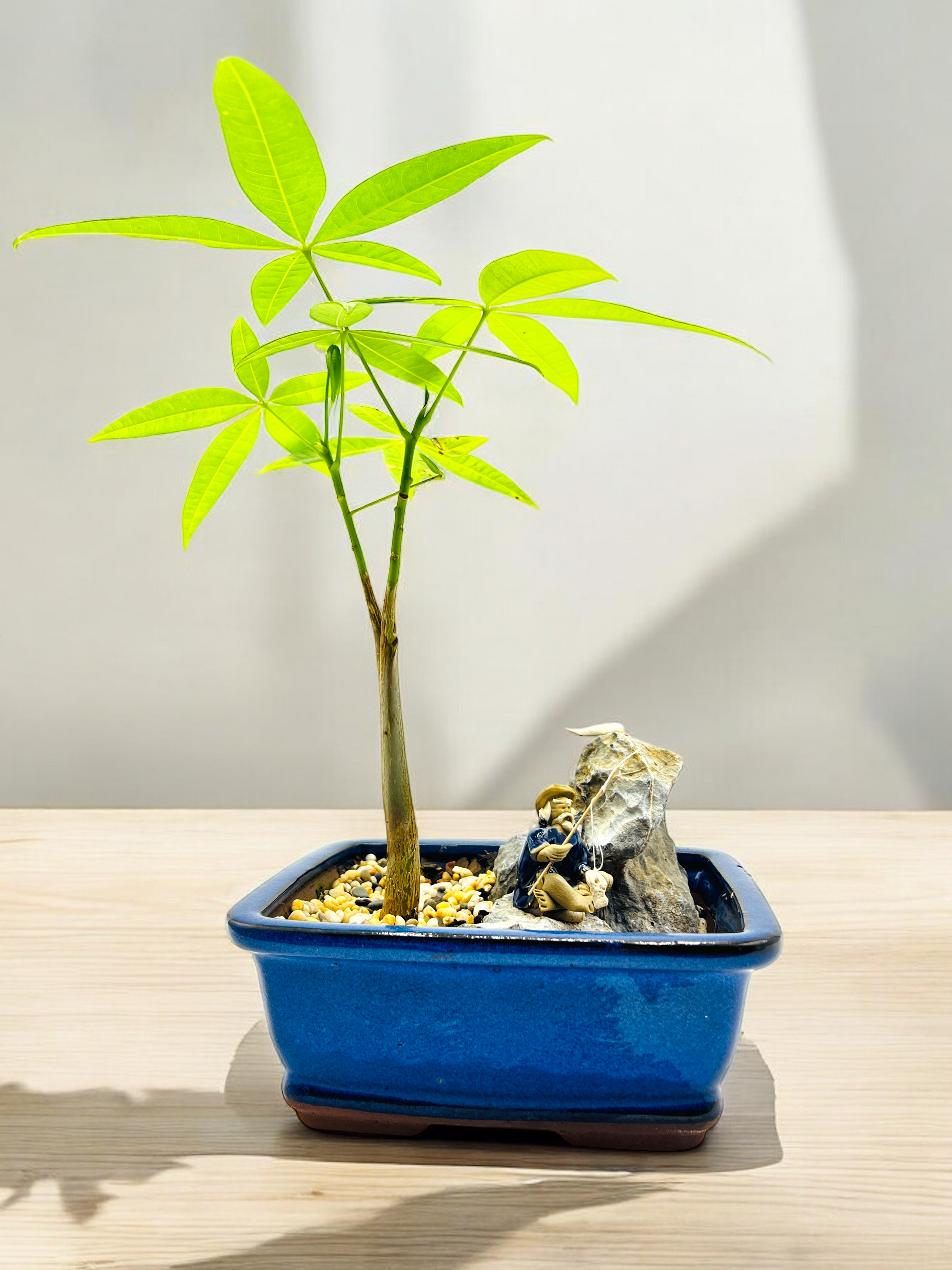 Rock Feature Indoor Guiana Chestnut “Pachira Aquatica” Bonsai Tree 7 Inch 发财树